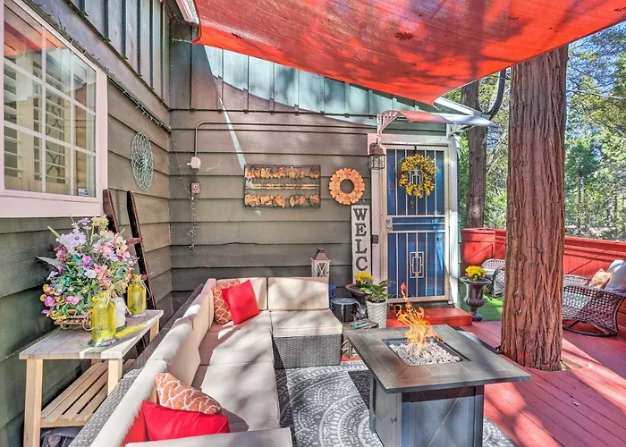 Die 2-Zimmer- 1 Mi To Lake Gregory Boho Crestline Cabin liegt in 3 km Entfernung vom Heart Rock Trail und lädt alle Gäste ein, verschiedene touristische Ziele in der Nähe zu erkunden.